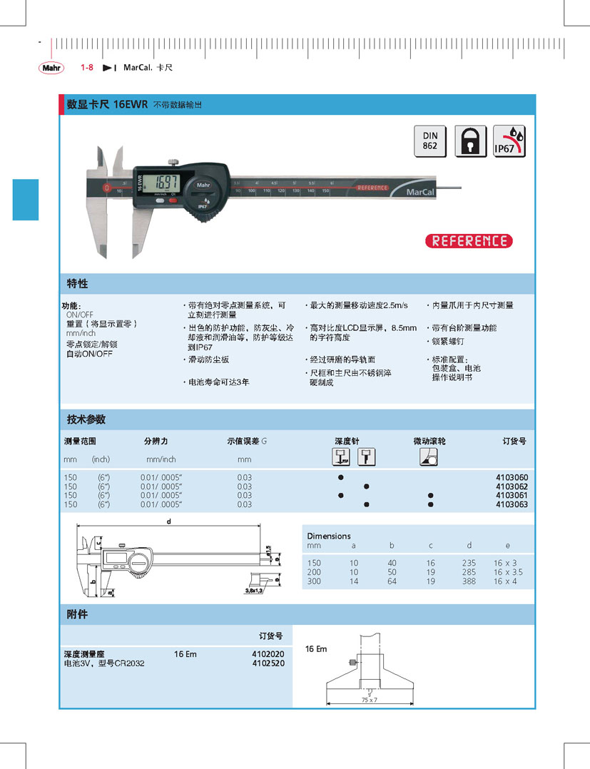 德國馬爾0-150mm數(shù)顯卡尺16EWR4103060