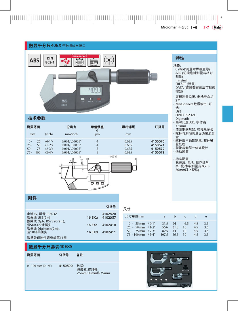 德國馬爾數(shù)顯千分尺40EX帶數(shù)據(jù)輸出4150570