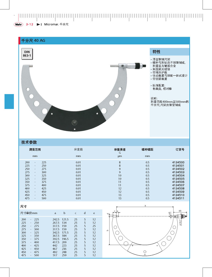 德國馬爾千分尺40AG,4134500