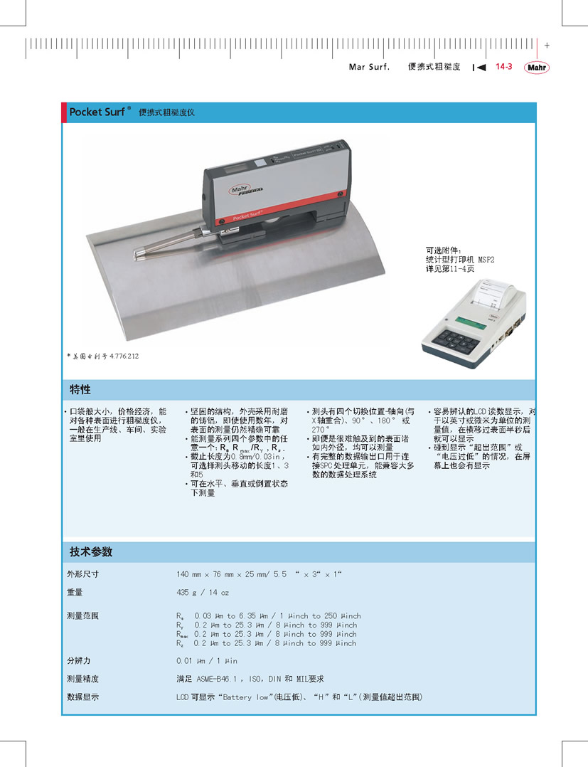 德國(guó)馬爾粗糙度儀pocket surf